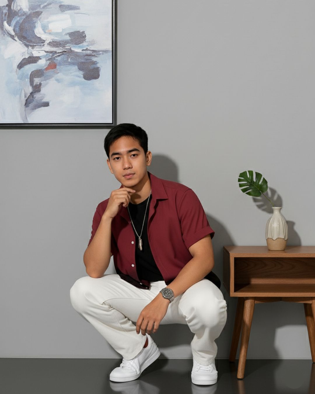 Add a bold twist to your casual style with this relaxed-fit gradient shirt. Featuring a smooth ombré fade from deep maroon to a darker tone, this shirt brings a modern edge to your wardrobe. The spread collar and short sleeves keep it effortlessly cool, while the soft, breathable fabric ensures all-day comfort. Pair it with jeans, shorts, or chinos for a versatile look that transitions easily from day to night.