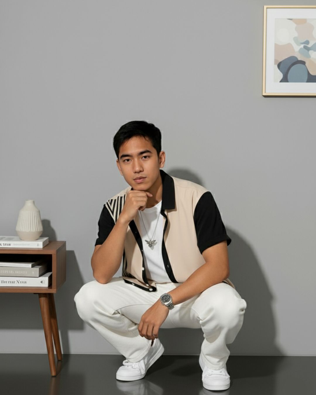 Step up your casual wardrobe with this stylish relaxed-fit shirt. Designed with a modern spread collar and short sleeves, it blends comfort with a statement look. The unique dual-tone design features bold vertical stripes on one side, balanced with solid contrast sleeves and collar, making it perfect for effortless style. Crafted from breathable fabric, this shirt keeps you cool and comfortable whether you’re hanging out with friends, heading out for the weekend, or just keeping it casual.